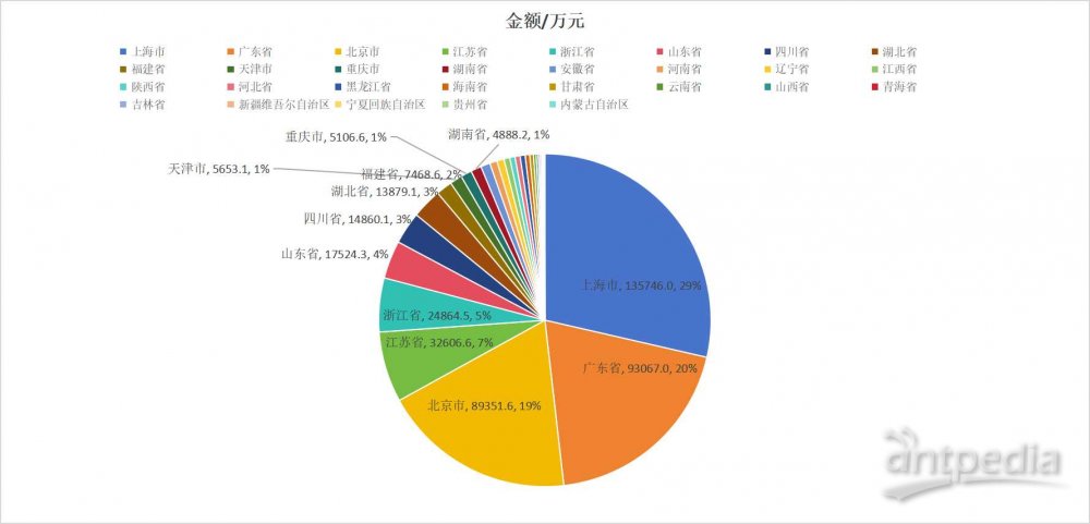 2024年上半年進(jìn)口總金額達(dá)到47.5億元,其中,上海13.6億元,占比29%,廣東9.3億元,占比20%,北京8.9億元,占比19%,江蘇3.2億元,占比7%,浙江2.5億元,占比5%。
