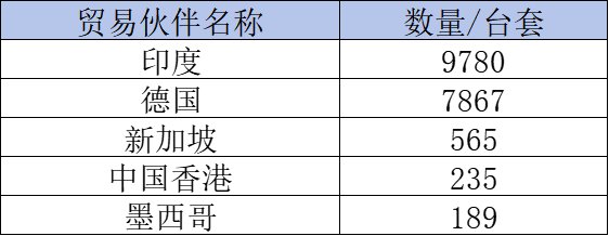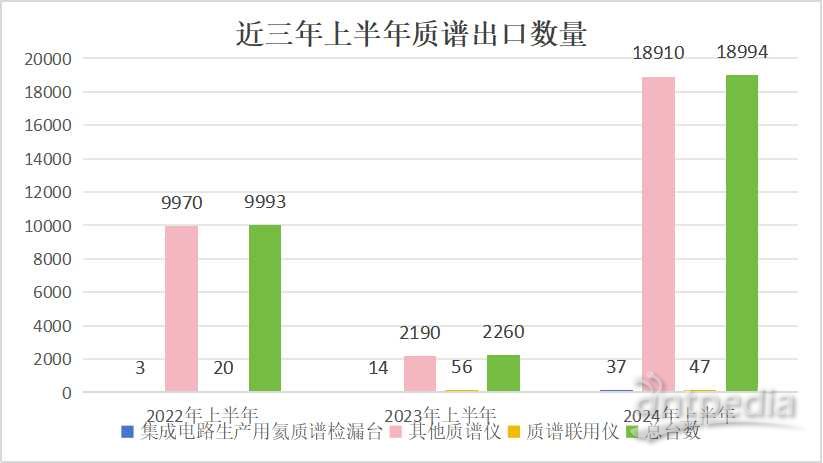2024年上半年質(zhì)譜出口18994臺(tái)套,數(shù)量前五的有印度9780臺(tái)套,德國(guó)7867臺(tái)套,新加坡565臺(tái)套,遠(yuǎn)銷中國(guó)香港235臺(tái)套,墨西哥189臺(tái)套。