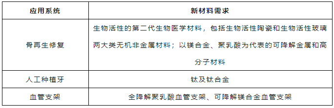 表4 生命健康領域新材料需求