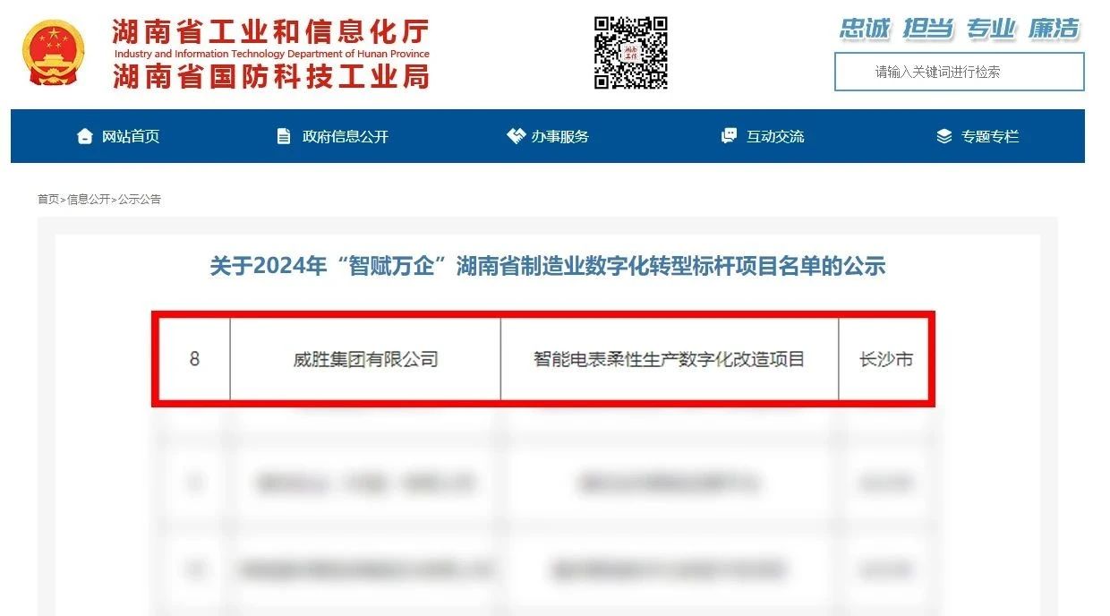 近日,湖南省工信廳公布2024年“智賦萬(wàn)企”湖南省制造業(yè)數(shù)字化轉(zhuǎn)型標(biāo)桿項(xiàng)目名單,共計(jì)遴選了162個(gè)湖南省制造業(yè)數(shù)字化轉(zhuǎn)型標(biāo)桿項(xiàng)目,威勝集團(tuán)有限公司的“智能電表柔性生產(chǎn)數(shù)字化改造項(xiàng)目”成功上榜。