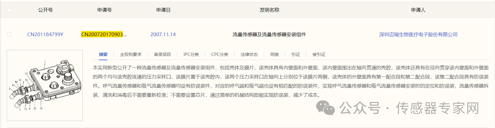 該傳感器專利由邁瑞醫(yī)療于2007年11月申請(qǐng),并于2009年1月,取得實(shí)用新型專利權(quán)授予,據(jù)專利描述: