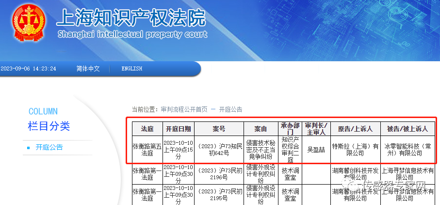 在2023年9月,上海知識(shí)產(chǎn)權(quán)法院公布特斯拉(上海)有限公司起訴冰零智能科技(常州)有限公司(下文簡(jiǎn)稱“冰零科技”),案由是“侵害技術(shù)秘密及不正當(dāng)競(jìng)爭(zhēng)糾紛”。