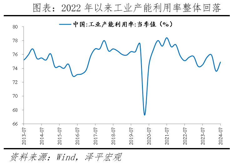 企業部門:以價換量,生產表現較好,但供需失衡、產能利用率低,價格低迷、企業利潤偏低。工業生產整體較好,尤其是高新技術產業相關行業;2021年以來,產能利用率趨勢向下,2024年Q2為74.9;PPI同比連續二十二個月為負,上半年利潤率為5.4%,僅稍高于2013年和2023年,除此均比2011年以來的其他年份低。