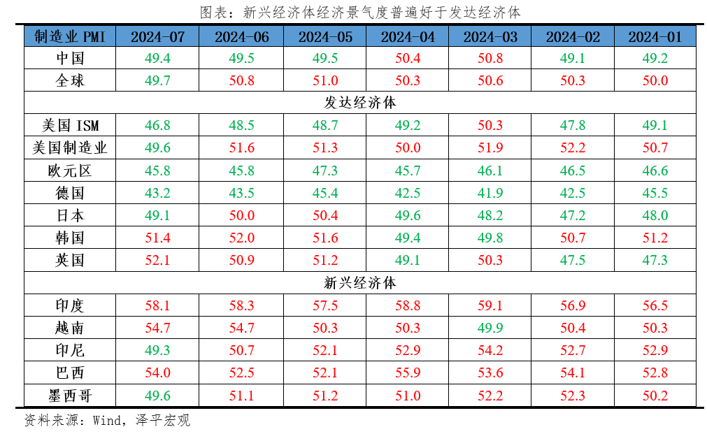 受美國持續補庫推動,全球制造業回暖,新興經濟體好于多數發達經濟體,服務業恢復好于制造業。全球制造業PMI持續位于榮枯線上,均值為50.5%;服務業為52.8%。標普美國制造業連續6個月擴張,均值51.3%;歐元區制造業PMI均值46.3%,法國、德國分別為45.6%、43.6%。巴西、墨西哥、越南、印尼、菲律賓制造業PMI均值分別為53.4%、51.3%、51.0%、52.6%和51.3%。