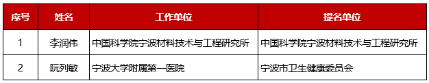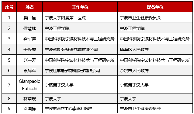 寧波市科技創新特別獎獲獎人員名單