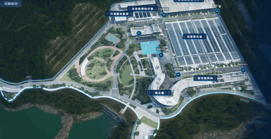 該項目位于位于福建省,設計規模10m³/d,項目旨在通過打造該水廠數字孿生可視化管理平臺,提高水廠智能化管理水平。基于BIM數據或CAD圖紙,項目對廠區進行三維建模,還原廠區建筑物、構筑物、工藝區間、設備等三維全貌,實時監控廠區各項參數,提供數據展示,設備信息查看等功能,為運營管理提供場景式的決策支持;采用3D渲染技術及VR虛擬現實技術,打造沉浸式、智慧化的運營管理模式。正泰中自的水務數字孿生技術可以幫助智慧水廠更好地集成和理解生產信息、提升管理效能。