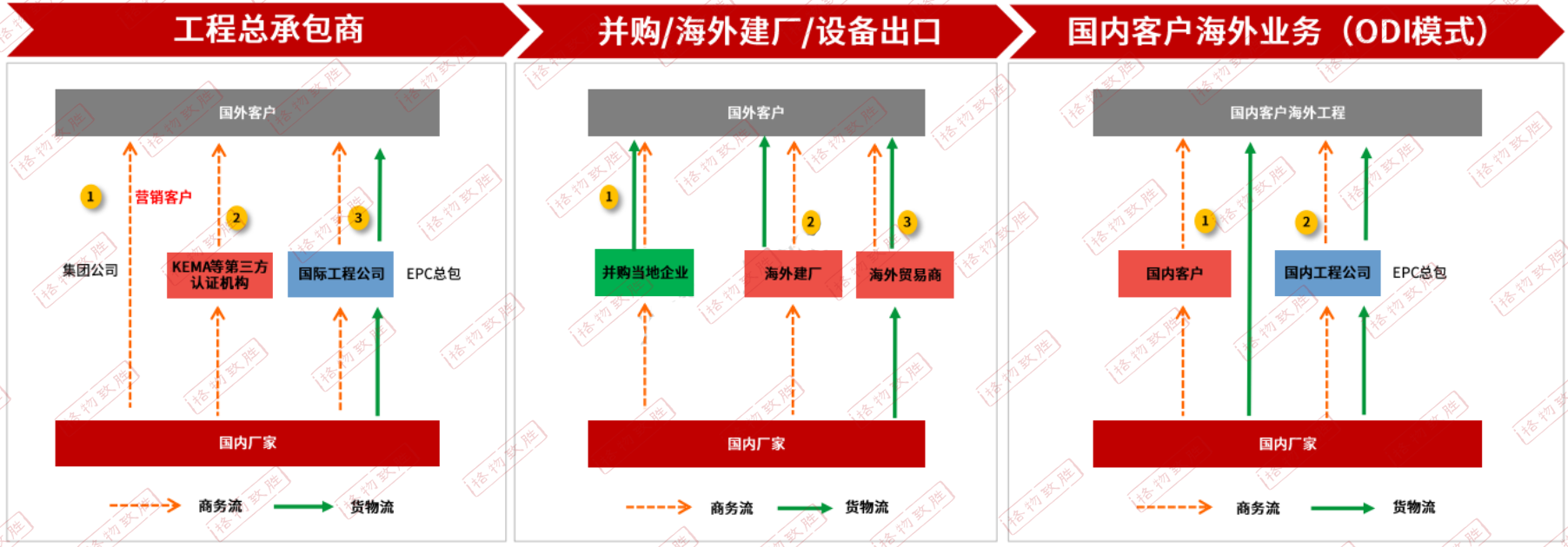 有些國內廠家本身已經與國內客戶建立一定的合作關系,當國內客戶有海外業(yè)務需求時,也會尋求原本合作且具有出海能力的廠家進行再次合作,國內廠商通過國內工程公司進行業(yè)務開展。