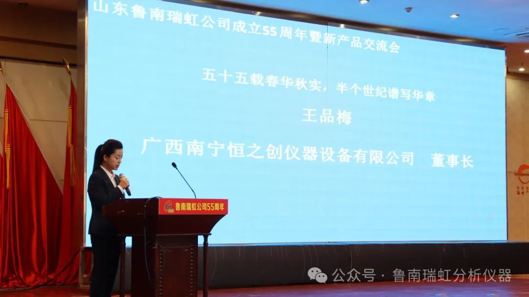 廣西南寧恒之創(chuàng)儀器設(shè)備有限公司董事長王品梅登臺致辭。55年以來瑞虹人用自己的汗水和智慧從無到有給中國的化工、化藥、食品檢測等行業(yè)創(chuàng)造了有力的分析手段,瑞虹公司的誕生助力了中國化工等相關(guān)行業(yè)得以更快的發(fā)展。