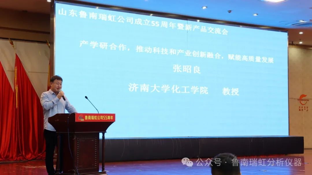濟南大學(xué)化學(xué)化工學(xué)院副院長張昭良教授登臺致辭。張教授講到他和瑞虹結(jié)緣多年,合作了多個項目,使用過瑞虹公司多種型號色譜儀器,同時希望瑞虹公司在未來的道路中專注高端儀器的研發(fā)與制造,加強校企合作,為客戶提供更好的色譜產(chǎn)品和服務(wù)。