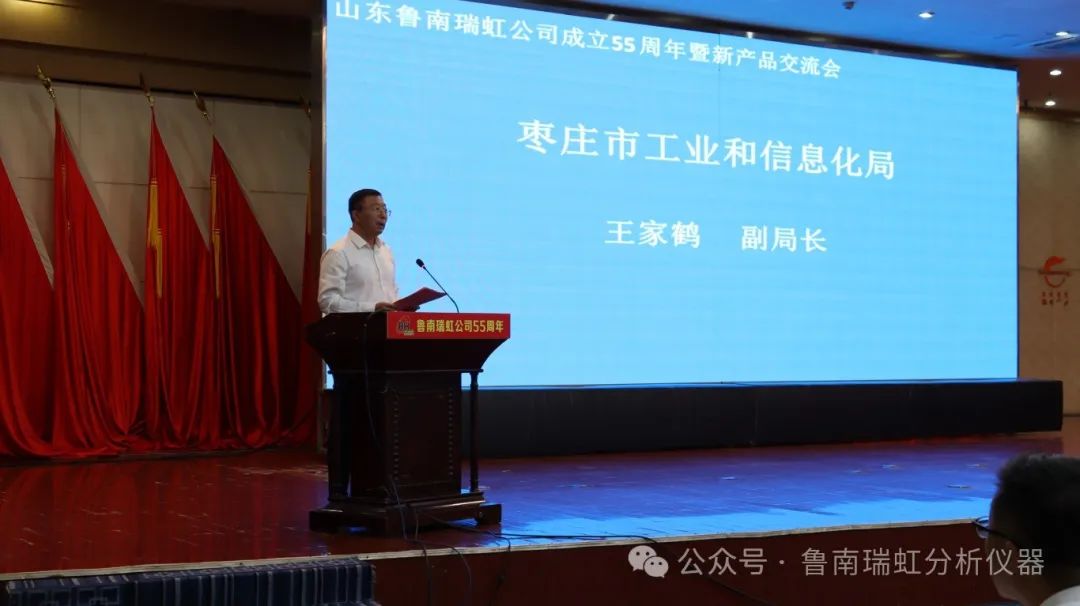 棗莊市工信局副局長王家鶴登臺致辭。魯南瑞虹儀器公司前身為技術(shù)密集性國營企業(yè),是棗莊市具有代表性的高新技術(shù)企業(yè),為國家色譜事業(yè)的發(fā)展較大貢獻。瑞虹公司要充分發(fā)揮科研優(yōu)勢,秉持以科研創(chuàng)新、產(chǎn)品創(chuàng)新的發(fā)展戰(zhàn)略方針,加大科研力度,打造魯南地區(qū)特色高新技術(shù)產(chǎn)業(yè),擴規(guī)模、提質(zhì)量、增效益,成為我們山東分析儀器領(lǐng)軍企業(yè)。