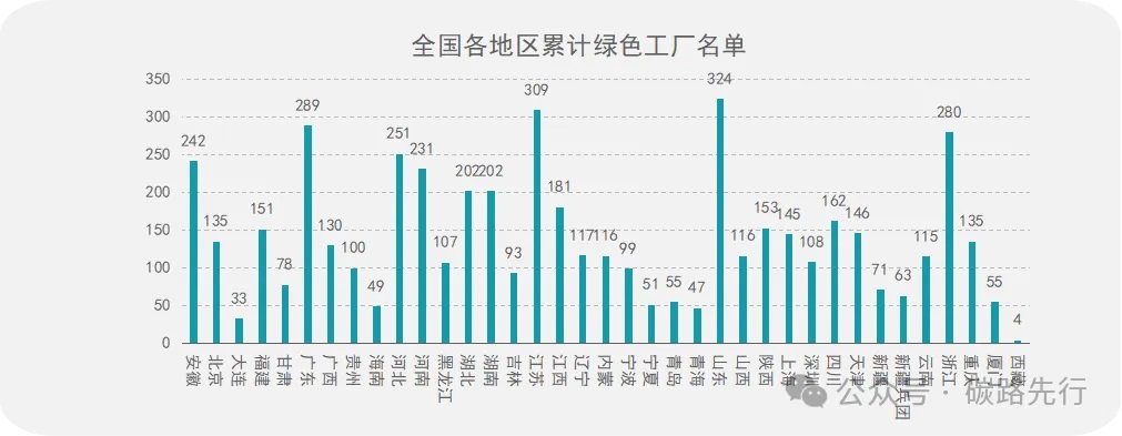 根據(jù)統(tǒng)計,全國綠色工廠累計申報最多的地區(qū)分別為山東省、江蘇省、廣東省和浙江省。
