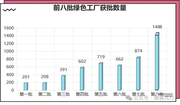 工信部自2017年以來開始組織全國性的綠色工廠評選活動,到2023年為止,累計公布了八批次綠色工廠名單,獲批數(shù)量達(dá)到5145家,其中,2022年動態(tài)調(diào)整移除綠色制造名單41家綠色工廠,2023年動態(tài)調(diào)整移除綠色制造名單9家綠色工廠,國家層面累計培育綠色工廠5095家。