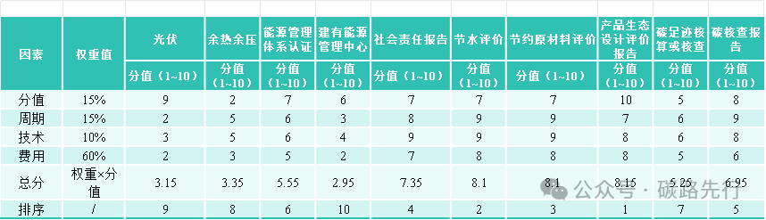 根據(jù)以上的拉分項(xiàng),我們將從這些項(xiàng)目在申報綠色工廠時所占的分值,實(shí)施的周期,實(shí)施的難易程度,實(shí)施的費(fèi)用進(jìn)行權(quán)重分析打分,來對申報綠色工廠時必要的補(bǔ)足材料進(jìn)行一個綜合性的排序。