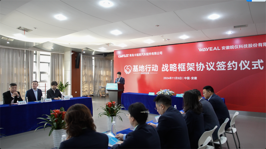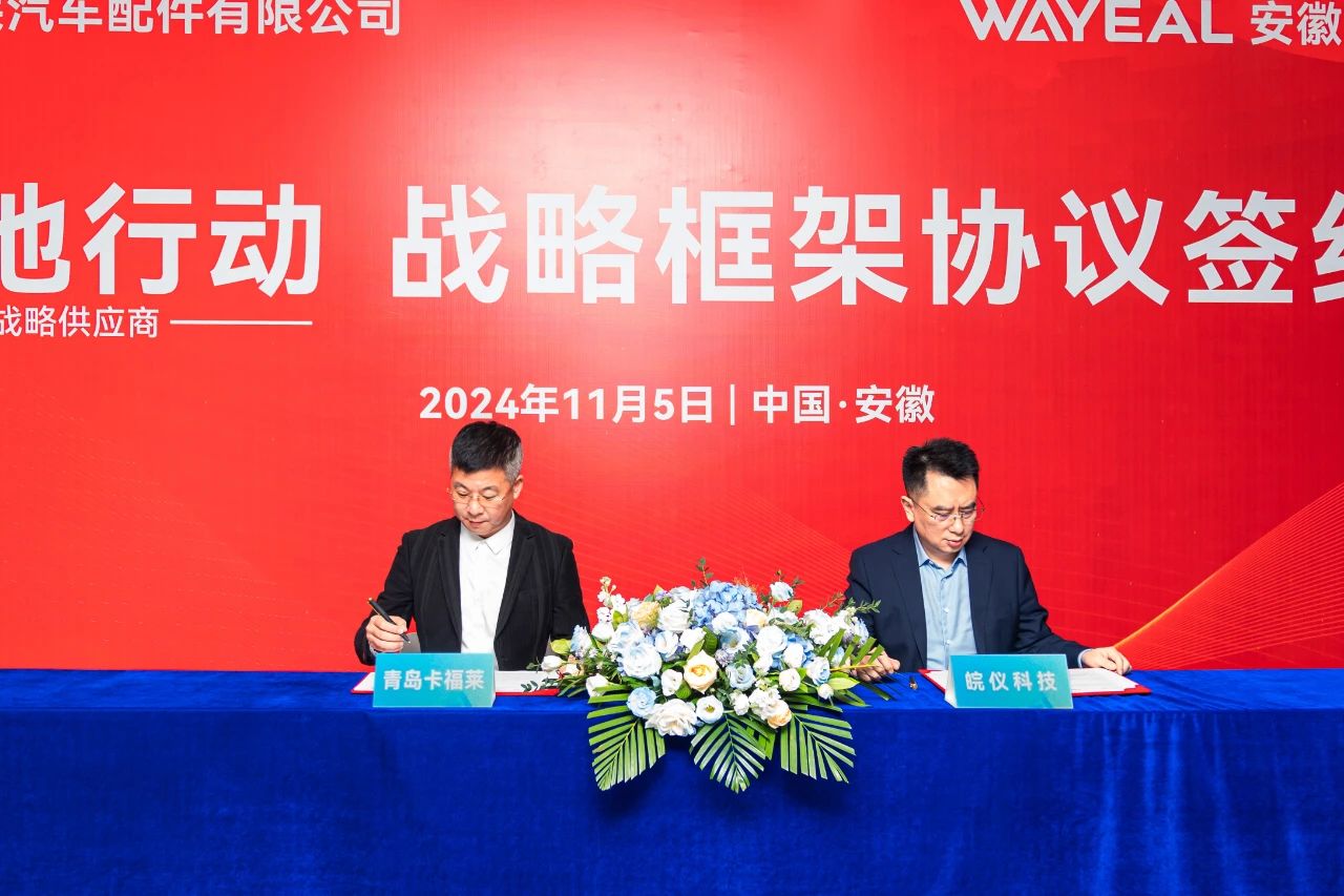 11月5日上午,安徽皖儀科技股份有限公司(以下簡稱“皖儀科技”)與青島卡福萊汽車配件有限公司(以下簡稱“青島卡福萊”)在皖儀科技總部正式簽署基地行動戰(zhàn)略框架協(xié)議。雙方圍繞汽車配件行業(yè)所面臨的新領域、新機遇展開深入交流,共同探索汽車配件行業(yè)發(fā)展新篇章。