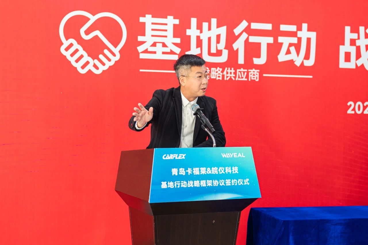 青島卡福萊副總裁張世陽出席簽約儀式并致辭,先進制造部經理徐敬省、生技部經理吳超、產品工程師朱孟迪、采購工程師韓嘉賀見證簽約。皖儀科技董事、常務副總裁王騰生出席簽約儀式并致辭,供應鏈中心總經理王宏群、財務中心總經理周先云、戰(zhàn)略與運營中心總經理胡愛平、工業(yè)智能檢測事業(yè)部副總經理陳搏、工業(yè)智能檢測事業(yè)部銷售總監(jiān)劉景露共同出席簽約儀式。