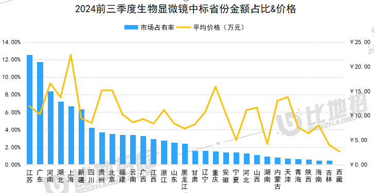 據(jù)比地招標(biāo)網(wǎng)統(tǒng)計(jì):2024年前三季度,生物顯微鏡招投標(biāo)市場(chǎng)有871家采購單位,872家中標(biāo)單位,中標(biāo)設(shè)備數(shù)量達(dá)2834臺(tái),中標(biāo)總金額約3.90億元。(產(chǎn)品關(guān)鍵詞:生物顯微鏡、倒置生物顯微鏡、熒光生物顯微鏡等)