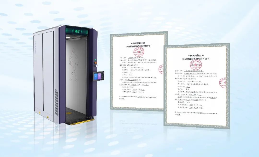 近日,海康睿影<毫米波人體成像安檢儀>通過了中國民航安檢設備許可認證A3級認證。
