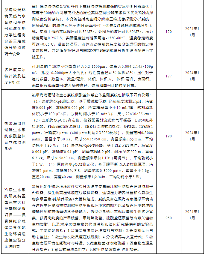 中國科學(xué)院南海海洋研究所2024年11~12月儀器設(shè)備采購意向匯總表