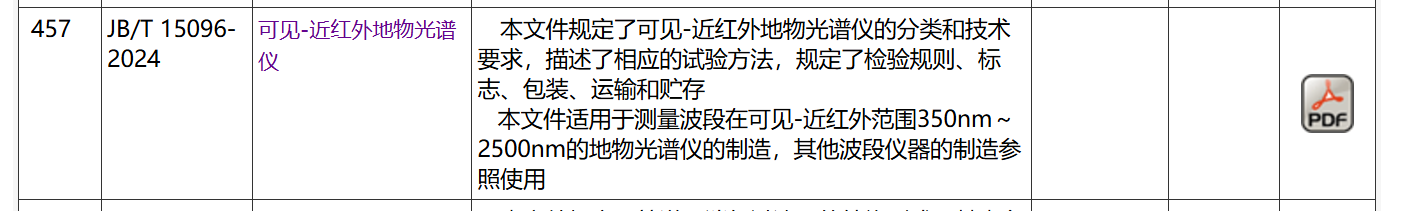 《可見(jiàn)-近紅外地物光譜儀》規(guī)定了可見(jiàn)-近紅外地物光譜儀的分類(lèi)和技術(shù)要求。還對(duì)檢驗(yàn)規(guī)則、標(biāo)志、包裝、運(yùn)輸和貯存等環(huán)節(jié)作出了詳細(xì)規(guī)定,為產(chǎn)品制造和質(zhì)量控制提供了完整的指導(dǎo)體系。