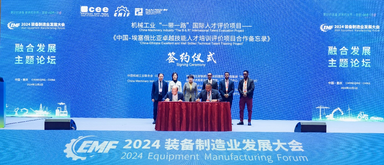 在成果發布環節,中國機械工業聯合會副會長李奇與埃塞俄比亞勞工與技能部工程卓越中心主任韓士蘭博士攜手登臺,共同簽署了《機械工業一帶一路國際人才評價項目——中國-埃塞俄比亞卓越技能人才培訓評價項目合作備忘錄》。這不僅標志著中埃兩國在機械工業領域人才培養與評價合作上邁出了堅實的一步,也譜寫了一帶一路倡議下國際技能合作的新篇章。