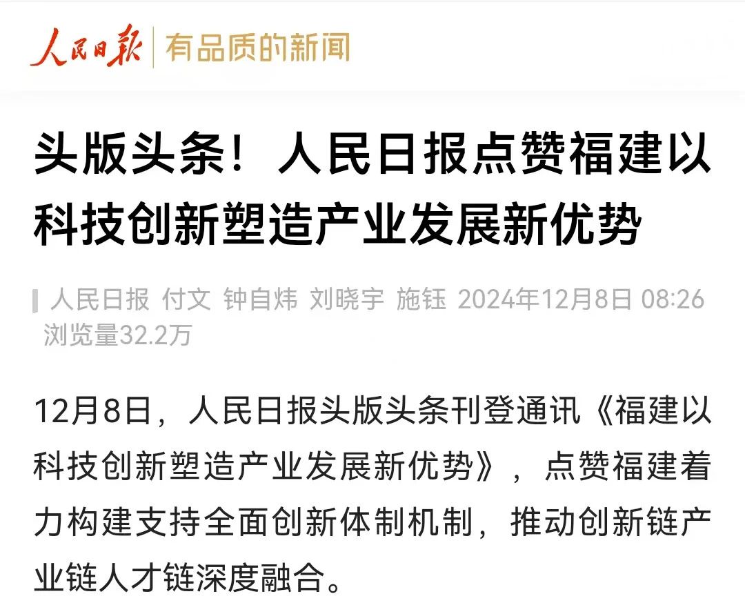 深入貫徹落實(shí)習(xí)近平總書記重要指示精神,福建著力構(gòu)建支持全面創(chuàng)新體制機(jī)制,推動創(chuàng)新鏈產(chǎn)業(yè)鏈人才鏈深度融合,以科技創(chuàng)新塑造產(chǎn)業(yè)發(fā)展新優(yōu)勢。