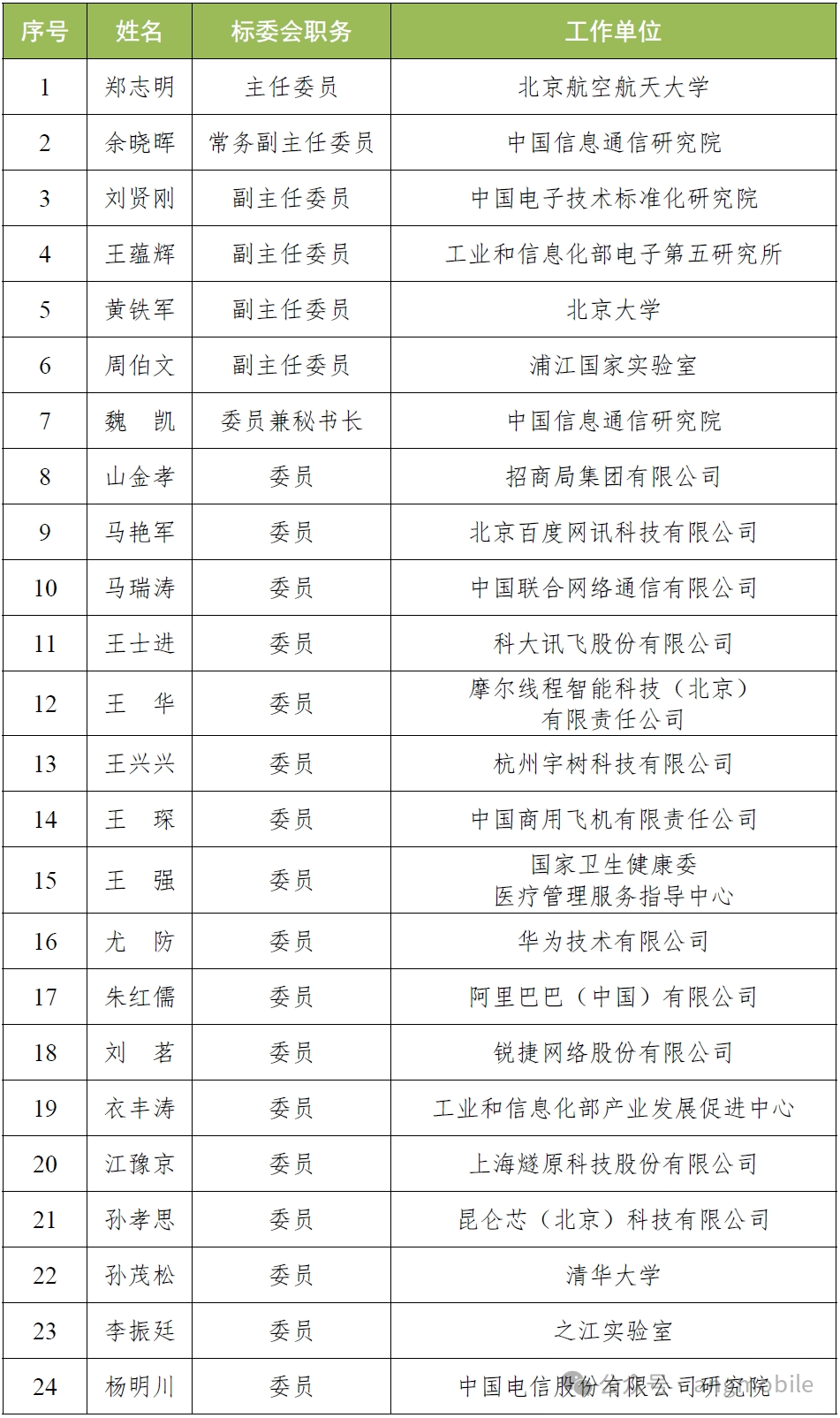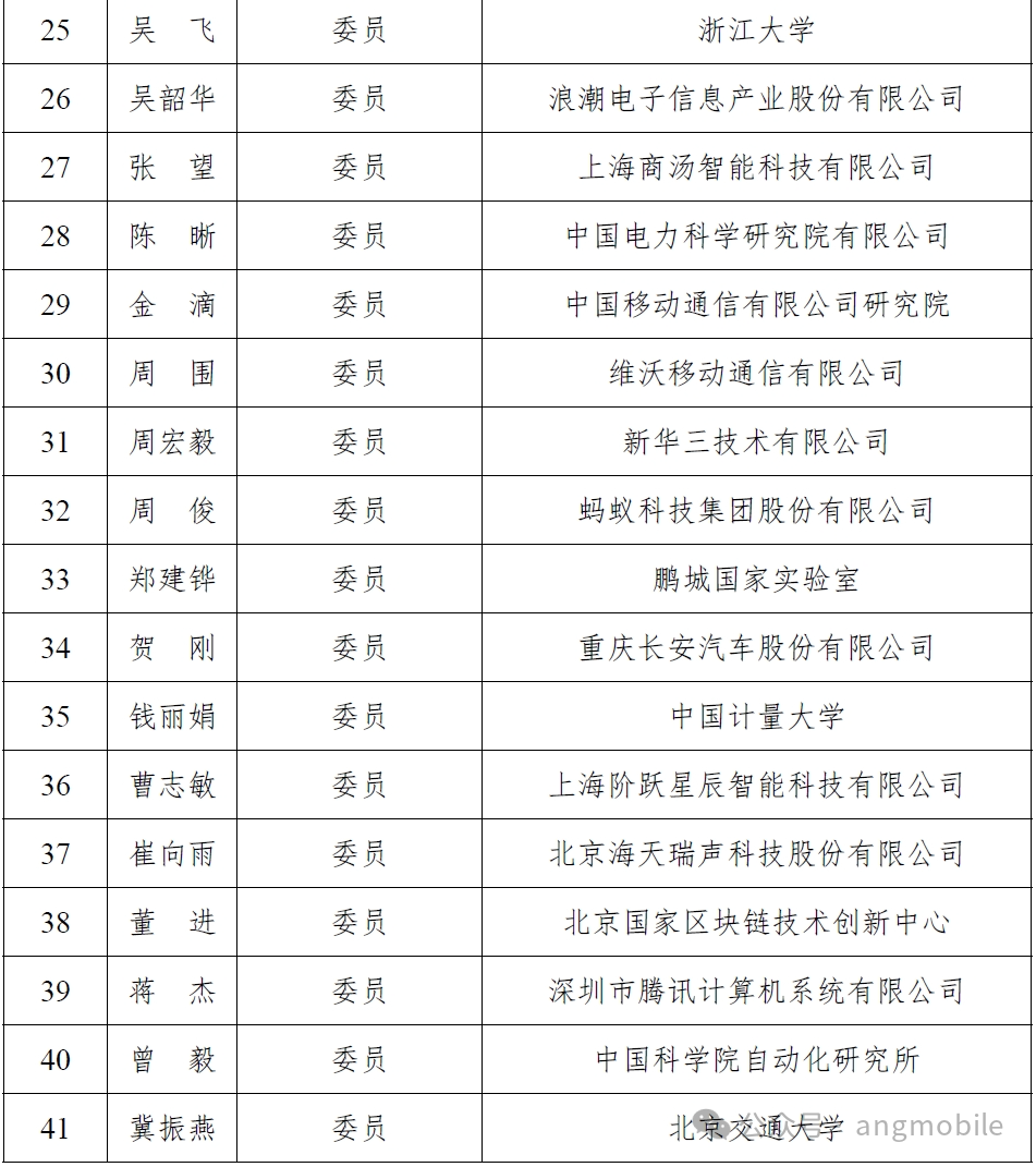 【附】第一屆工信部AI標準化技術委員會委員