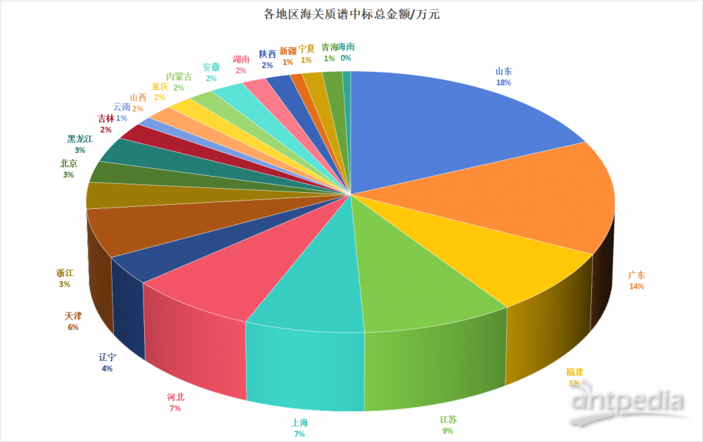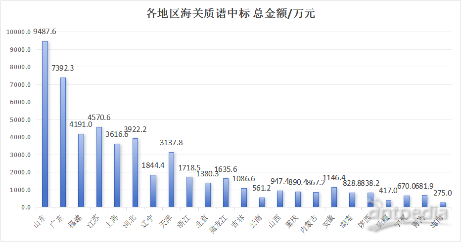 根據(jù)截至12月30日的公開中標(biāo)信息,不完全統(tǒng)計(jì)顯示,全國共有23個(gè)省、直轄市、自治區(qū)的72個(gè)海關(guān)相關(guān)單位參與了質(zhì)譜儀的采購,共采購了288臺套質(zhì)譜儀器,中標(biāo)總金額達(dá)到5.2億元人民幣。