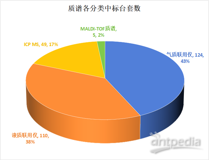 從質(zhì)譜儀器的分類角度分析,本文涵蓋了氣質(zhì)聯(lián)用儀、液質(zhì)聯(lián)用儀、ICP MS以及MALDI-TOF質(zhì)譜四大類別。在中標(biāo)情況方面,氣質(zhì)聯(lián)用儀和液質(zhì)聯(lián)用儀占據(jù)了主導(dǎo)地位。具體來看,氣質(zhì)聯(lián)用儀共中標(biāo)124臺,占比達(dá)到43%;液質(zhì)聯(lián)用儀緊隨其后,中標(biāo)110臺,占比38%;ICP MS中標(biāo)49臺,MALDI-TOF質(zhì)譜中標(biāo)5臺。