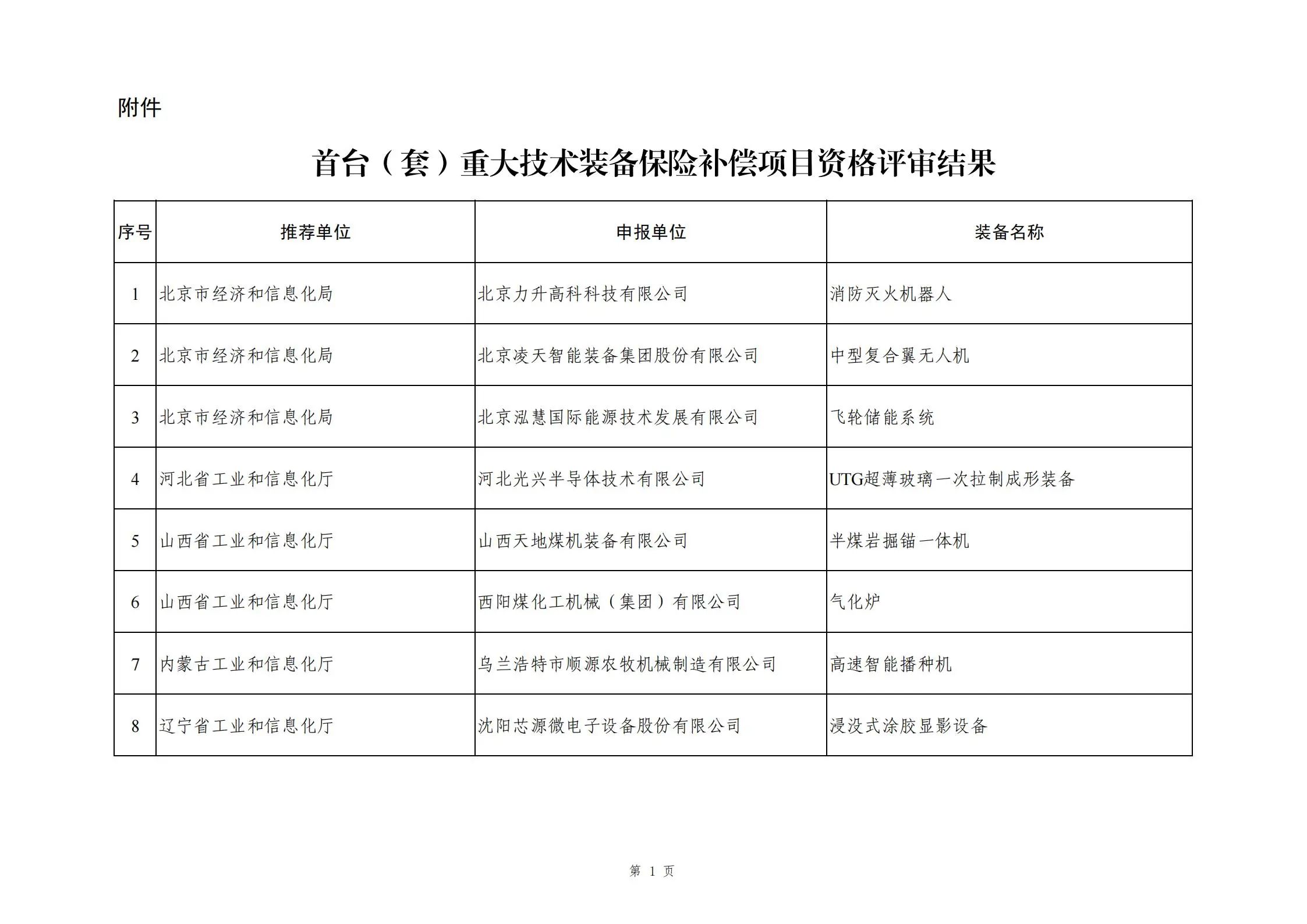 附件:首臺(套)重大技術(shù)裝備保險補償項目資格評審結(jié)果