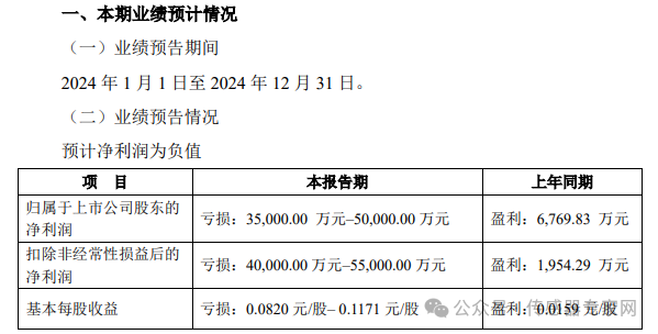 報(bào)告期內(nèi),歸屬于上市公司股東的凈利潤(rùn) -35,000.00 萬(wàn)元~ -50,000.00 萬(wàn)元,扣除非經(jīng)常性損益后的凈利潤(rùn)-40,000.00 萬(wàn)元~ -55,000.00 萬(wàn)元。