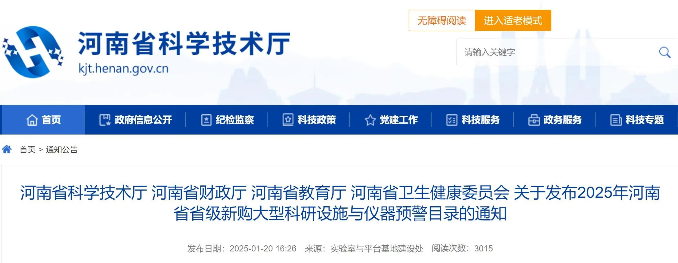 河南發布25年省級新購大型科研設施與儀器預警目錄