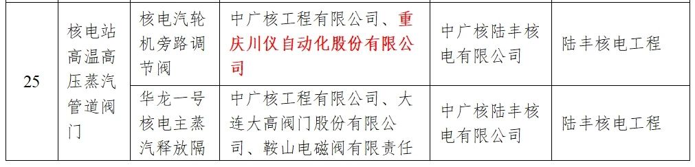 該裝備由重慶川儀與中廣核工程有限公司聯合研制,應用于陸豐核電工程。
