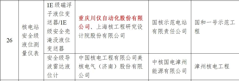 重慶川儀聯合上海核工程研究設計院開發的1E級磁浮子液位變送器和安全殼淹沒液位變送器,應用于國和一號示范工程。