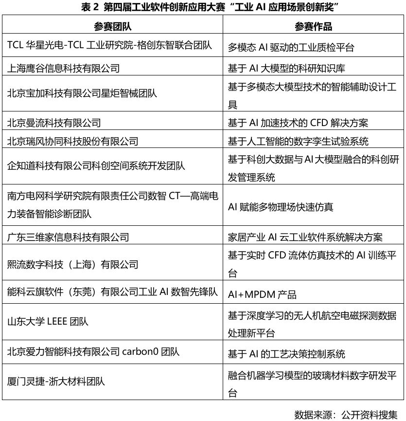 第四屆工業(yè)軟件創(chuàng)新應用大賽以“AI+工業(yè)軟件”為主題,涌現(xiàn)出一大批優(yōu)秀的AI創(chuàng)新與應用項目,有98家隊伍參與比賽,有41支隊伍入圍決賽,13支隊伍獲得技術創(chuàng)新獎,13支隊伍獲得應用場景創(chuàng)新獎。