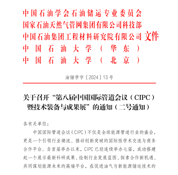 為深化行業協同創新,推動儀器儀表行業在能源管道行業用戶領域深耕,現轉發《關于召開第八屆中國國際管道會議(CIPC)暨技術裝備與成果展的通知》(詳見附件),誠邀各會員單位及相關企業積極參與。