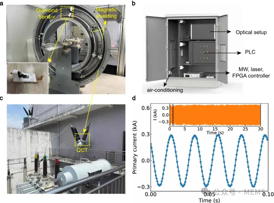 此外,該成果最終應用于安徽合肥110kV變電站的電流實時監(jiān)測,成功實現(xiàn)對三相交流電路中單相電流的實時監(jiān)測。該研究不僅攻克了金剛石量子傳感器的集成化關(guān)鍵技術(shù),而且推動了量子傳感技術(shù)在工業(yè)領(lǐng)域的應用落地。