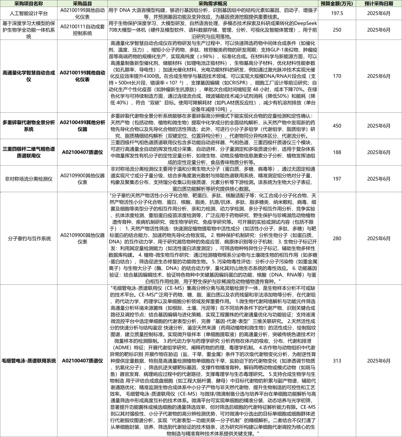 據中國政府采購網消息,近日,中科院成都生物研究所發布多個2025412月政府采購意向,計劃采購時間均為20256月份。