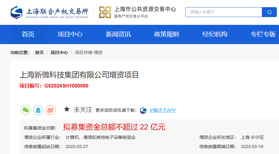 與此同時(shí),維科網(wǎng)關(guān)注到,新微集團(tuán)還在上海聯(lián)合產(chǎn)權(quán)交易所發(fā)布增資項(xiàng)目公告,擬募集資金總額不超過22億元,且本次公開掛牌增資已獲得其第一大股東上海聯(lián)和投資有限公司的批復(fù)。