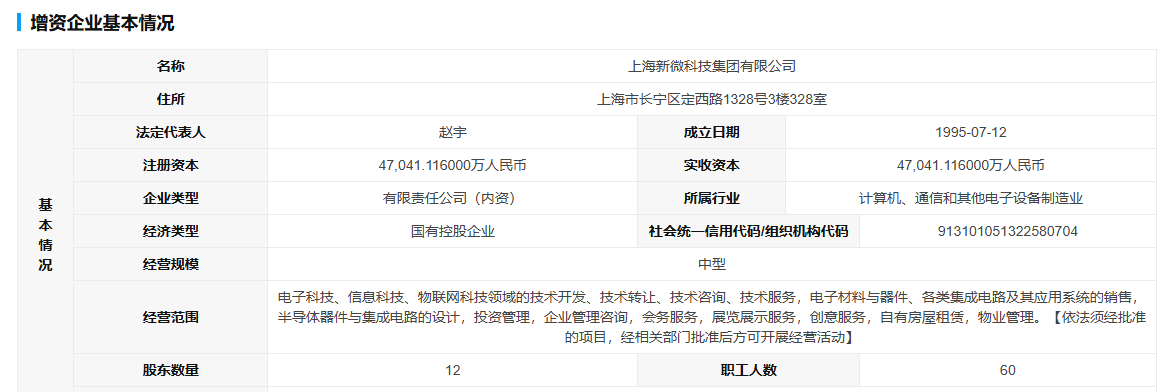 資料顯示,新微集團(tuán)成立于1995年7月12日,是中國科學(xué)院上海微系統(tǒng)與信息技術(shù)研究所、上海聯(lián)和投資有限公司共同發(fā)起成立的高科技投資公司。公司以實(shí)業(yè)為基礎(chǔ),發(fā)揮中科院的科技優(yōu)勢(shì),推動(dòng)科技與市場(chǎng)、資本的有效結(jié)合,促進(jìn)科技成果的產(chǎn)業(yè)化進(jìn)程,成為致力于超越摩爾(MtM)領(lǐng)域的大型科技產(chǎn)業(yè)投資及管理公司。公司致力于中科院科技成果轉(zhuǎn)移轉(zhuǎn)化、投融資、科技孵化器建設(shè)等核心任務(wù),專注于微電子材料、傳感器、物聯(lián)網(wǎng)、高可靠性集成電路等領(lǐng)域。