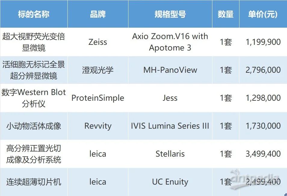 近日,中國科學(xué)院基礎(chǔ)醫(yī)學(xué)與腫瘤研究所(籌)(簡稱“中科院醫(yī)學(xué)所”)一批尖端科研設(shè)備成功中標(biāo),總中標(biāo)金額達(dá)1302.27萬元。此次中標(biāo)設(shè)備涵蓋超大視野熒光變倍顯微鏡、活細(xì)胞無標(biāo)記全景超分辨顯微鏡、數(shù)字 Western Blot 分析儀、小動物活體成像等,品牌包括蔡司、澄觀光學(xué)、ProteinSimple、瑞孚迪和徠卡。這批設(shè)備的引入,將為研究所的研究注入強(qiáng)大動力。