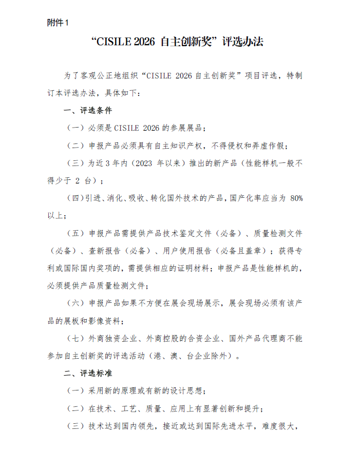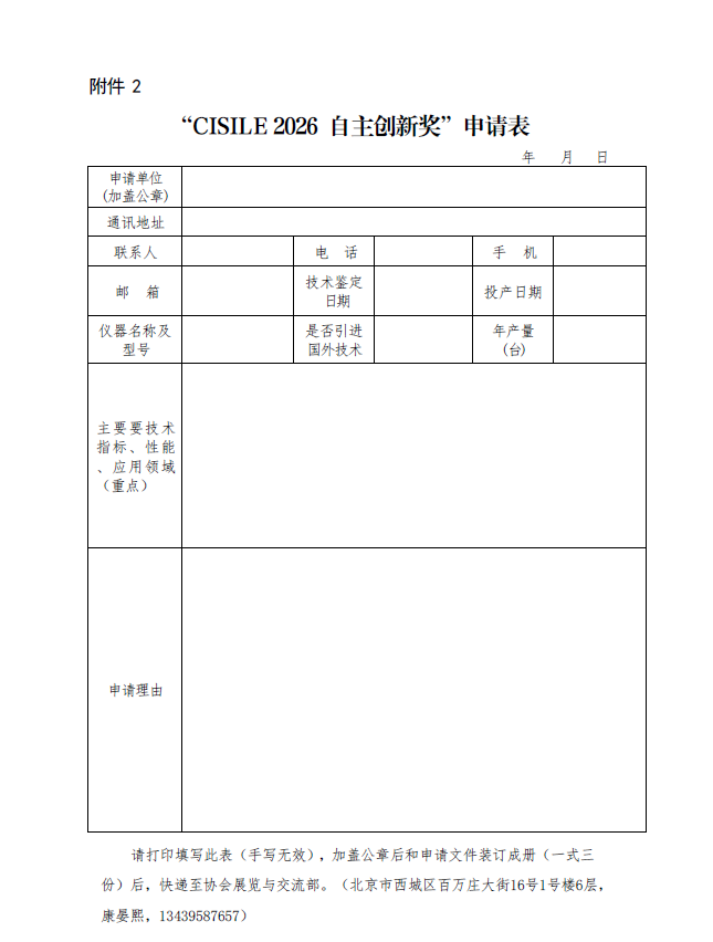 點擊“申請表”下載CISILE 2026 自主創(chuàng)新獎申請表