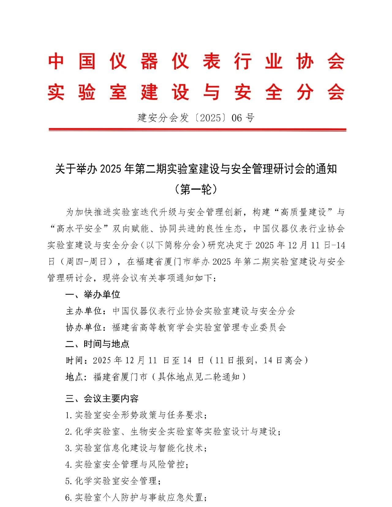 關(guān)于舉辦2025年第二期實(shí)驗(yàn)室建設(shè)與安全管理研討會(huì)