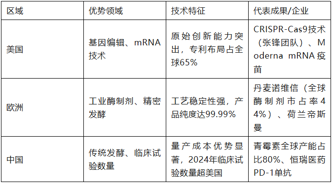 美國依托強大的基礎研究能力,主導合成生物學底層技術創新,CRISPR基因編輯專利家族覆蓋72%以上應用場景;歐洲憑借百年發酵工業積累,在酶制劑定向進化、高密度發酵工藝上構筑壁壘,諾維信的蛋白酶比活(催化效率)是中國同類產品的2.3倍。中國雖在發酵規模和臨床試驗數量上領先,但缺乏自主知識產權的核心菌種和高端轉化技術。