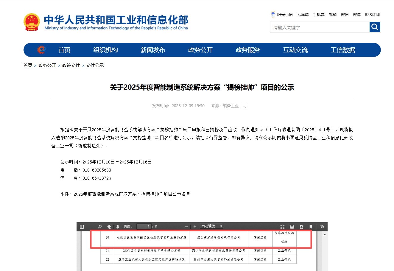 近日,工業(yè)和信息化部公示了2025年度智能制造系統(tǒng)解決方案“揭榜掛帥”項(xiàng)目名單,威思頓“電能計(jì)量設(shè)備制造在線檢測(cè)及智能產(chǎn)線解決方案”項(xiàng)目成功入選。