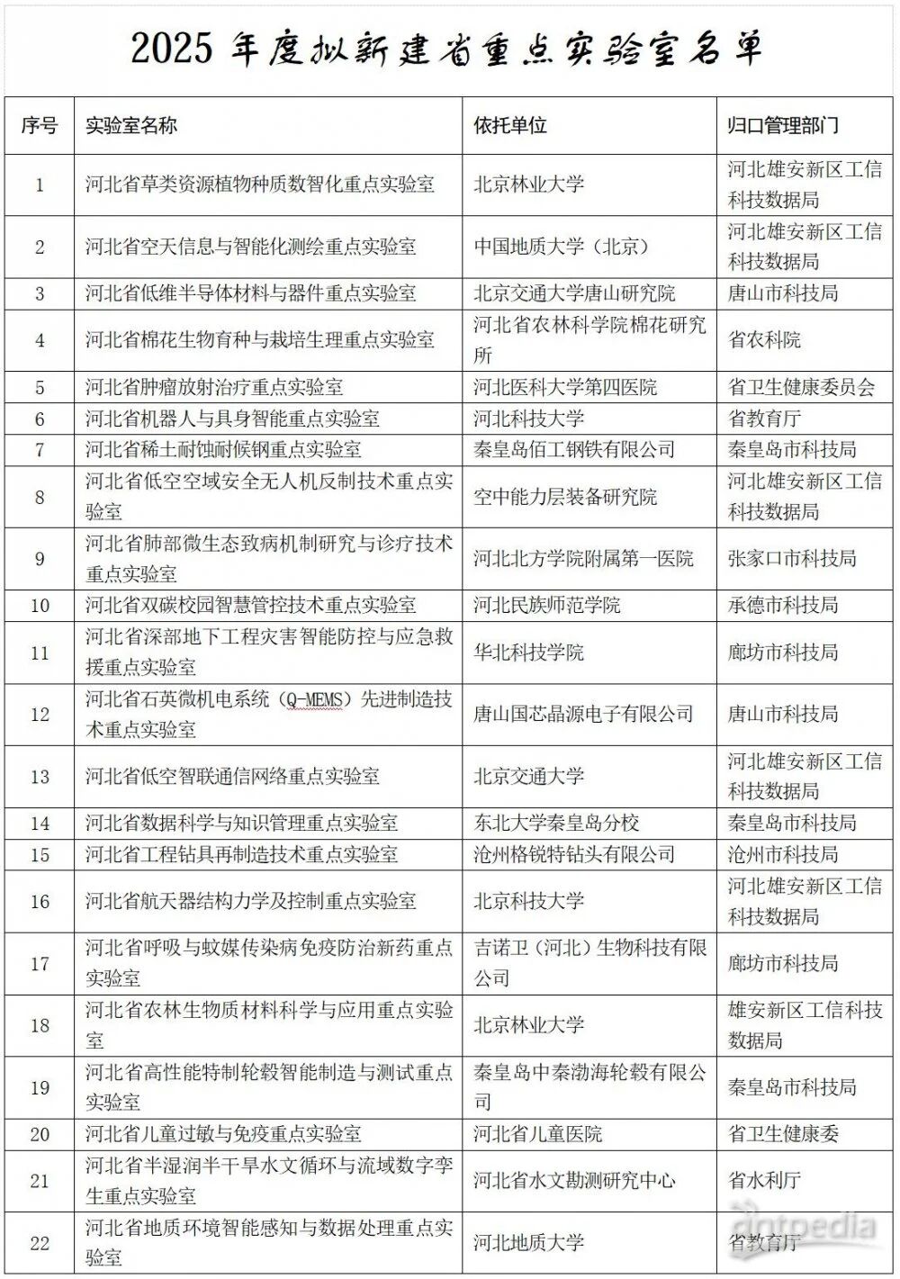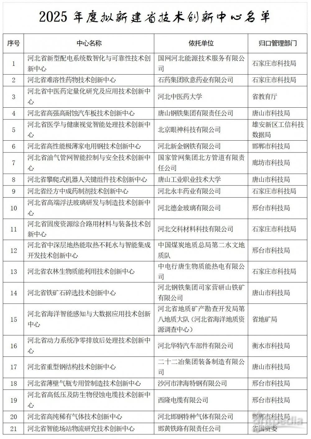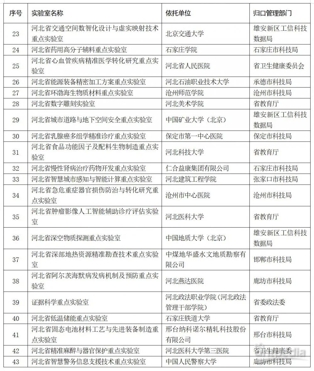 河北省科學(xué)技術(shù)廳關(guān)于2025年度擬新建省重點(diǎn)實(shí)驗(yàn)室和省技術(shù)創(chuàng)新中心的公示