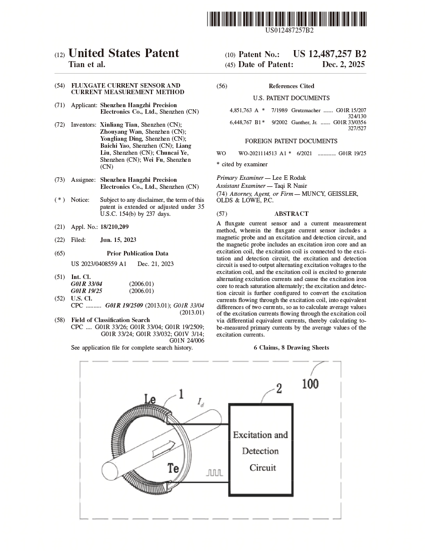 近日,深圳市航智精密電子有限公司斬獲重要國際技術(shù)認(rèn)可 —— “一種磁通門電流傳感器及電流測(cè)量方法”正式獲得美國發(fā)明專利授權(quán),標(biāo)志著航智在電流測(cè)量領(lǐng)域的核心技術(shù)實(shí)力得到美國知識(shí)產(chǎn)權(quán)體系的權(quán)威認(rèn)證。