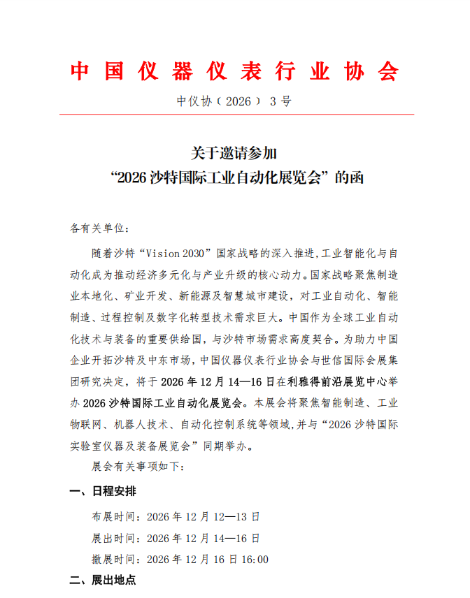 關(guān)于邀請參加“2026 沙特國際工業(yè)自動化展覽會”