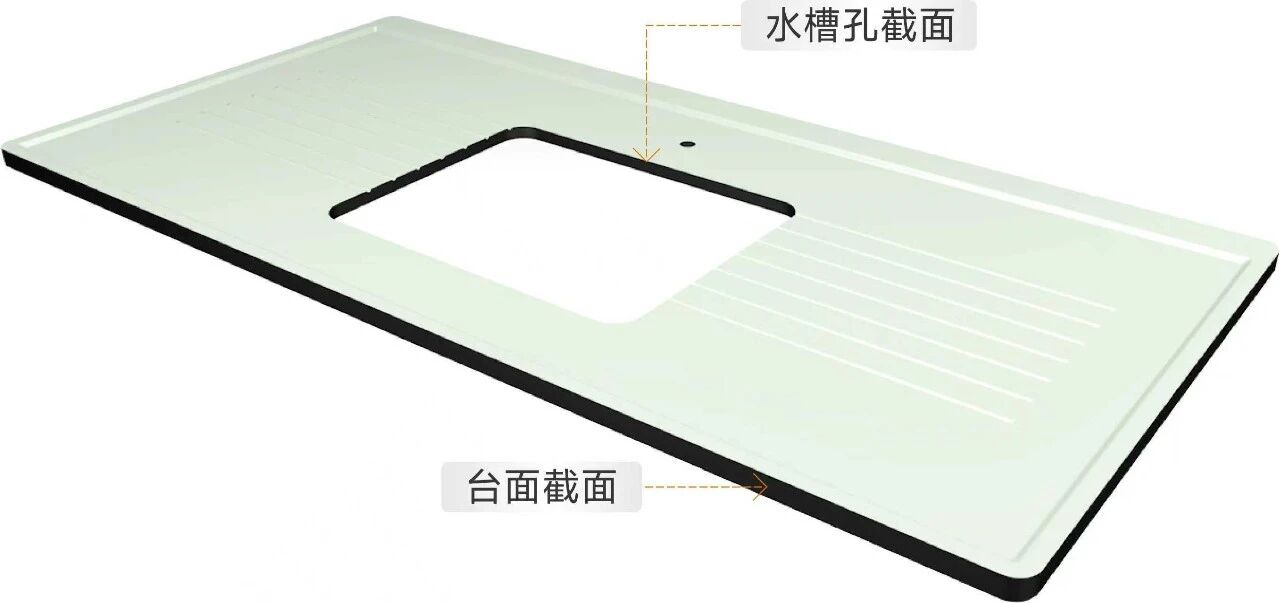 第九代-歐標(biāo)陶瓷臺面可見截面及水槽孔截面全新升級一體成型釉面,適用于水槽臺及通風(fēng)柜臺面。